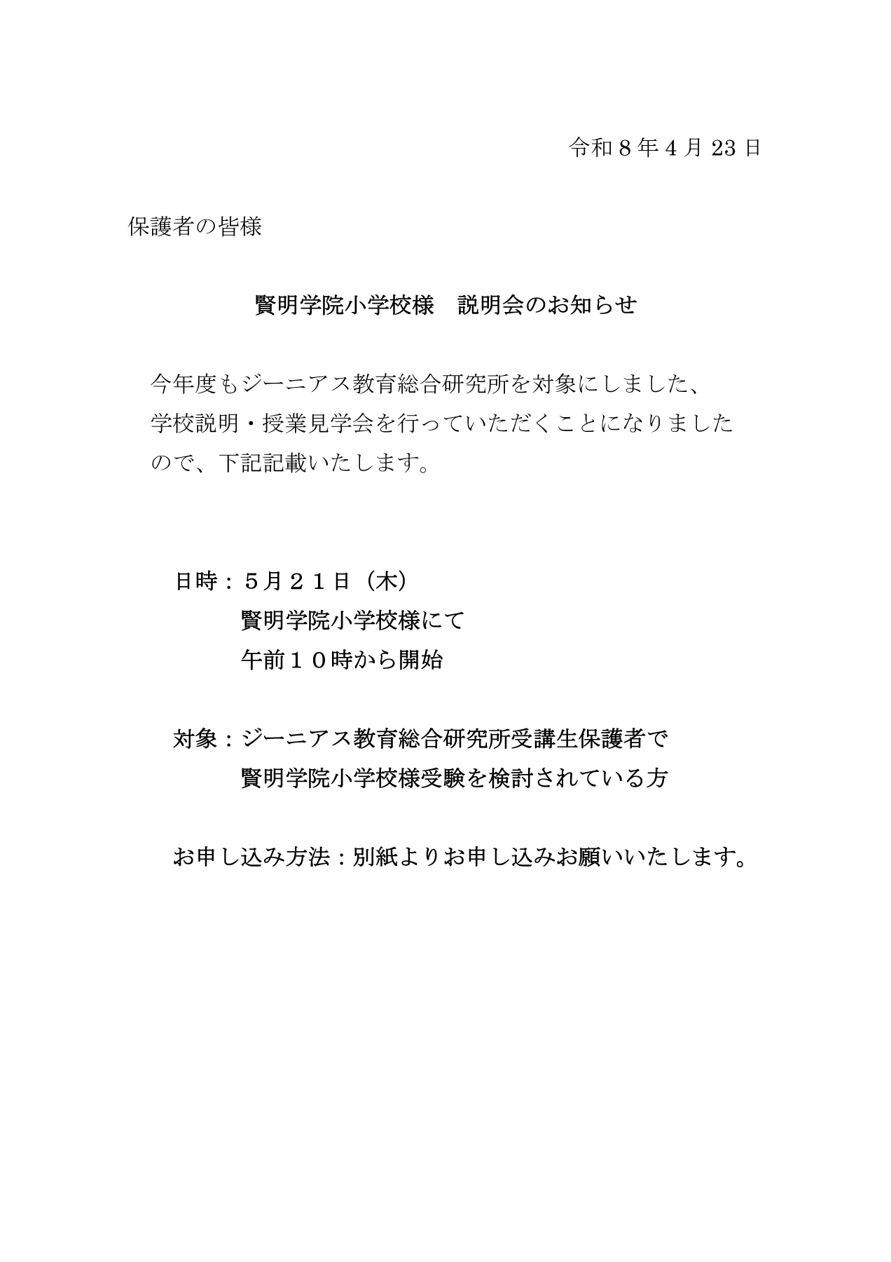 利晶学園小学校様 学校訪問会&説明会のご案内(2026年度) ジーニアス教育総合研究所限定