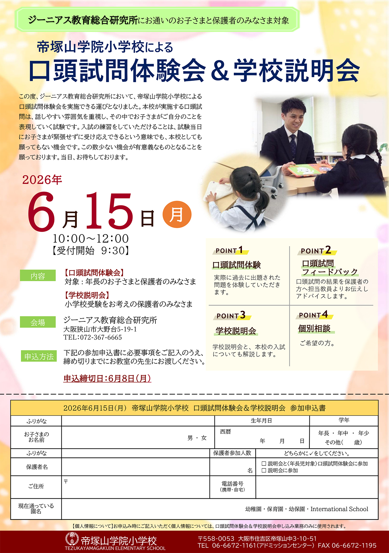 帝塚山学院小学校受験、利晶学園小学校受験、賢明学院小学校受験に特化・対応。お受験対策!