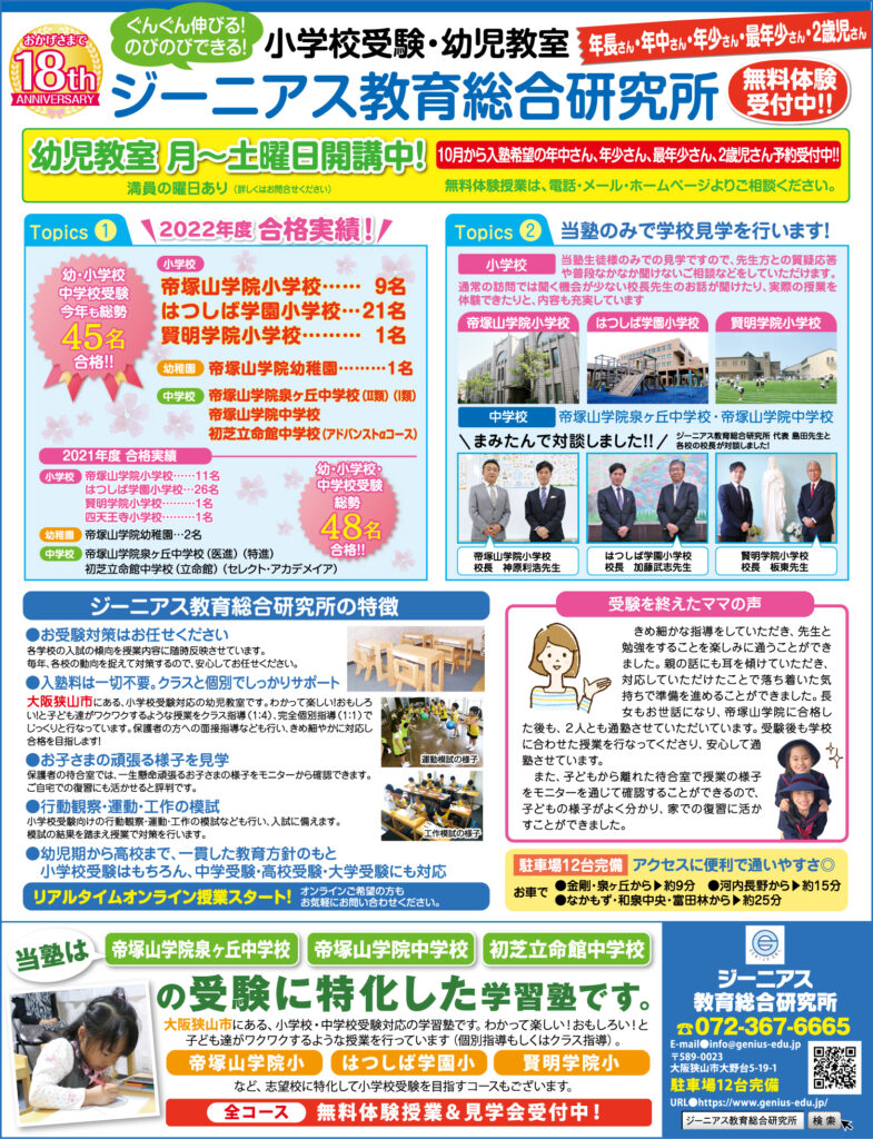 大阪府大阪狭山市のジーニアス教育総合研究所 ホームページ制作、グラフィックデザイン・印刷、パソコン修理・データ復旧抽出、OA機器・ネットワーク構築、小学校受験対応の幼児教室、小中高生対象学習塾、プリザーブドフラワー教室