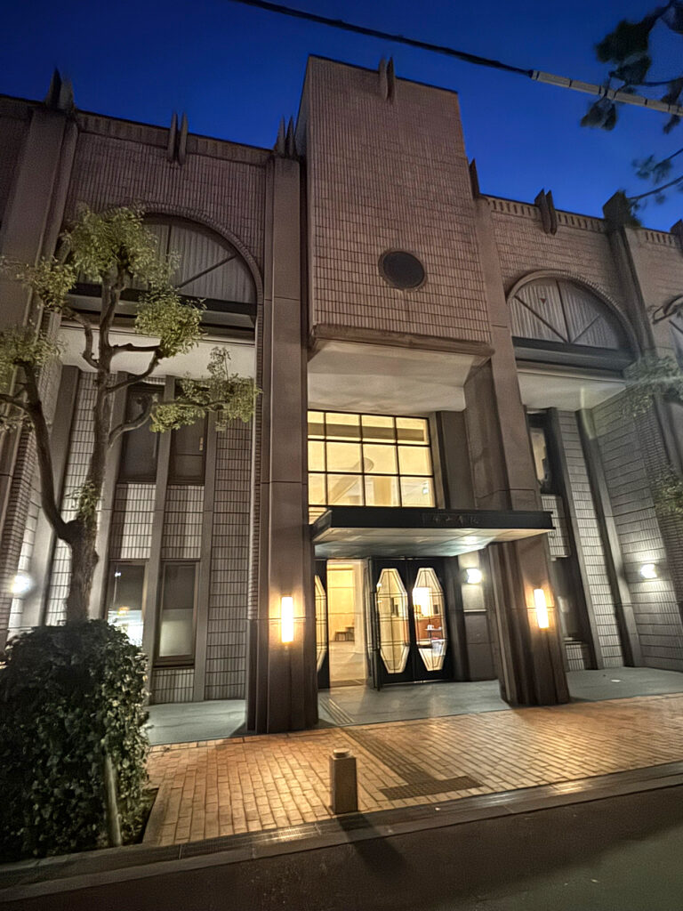 夕方からは、大阪市内の帝塚山学院様での幹事会でしたが、夜の校舎もきれいです。