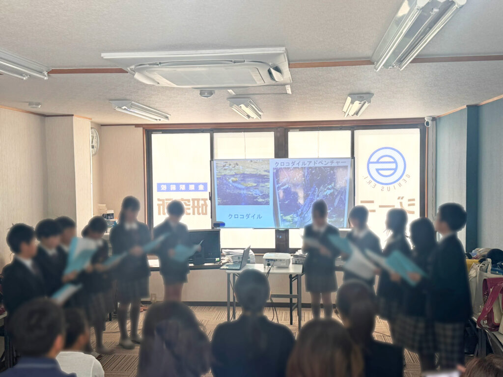 本日は、利晶学園小学校様の企画により、ジーニアス教育総合研究所 金剛駅前校にて、同校小学5年生の皆さまにオーストラリア研修での学びを発表していただきました。